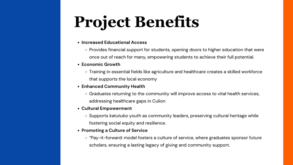 Improved Community Health and Services: With scholars pursuing fields in nursing, dentistry, and medicine, Culion will benefit from enhanced healthcare and public health support. Graduates committed to returning to the area will provide essential healthcare services, address healthcare gaps, and promote healthier communities.
